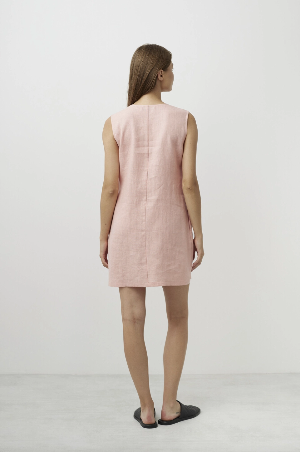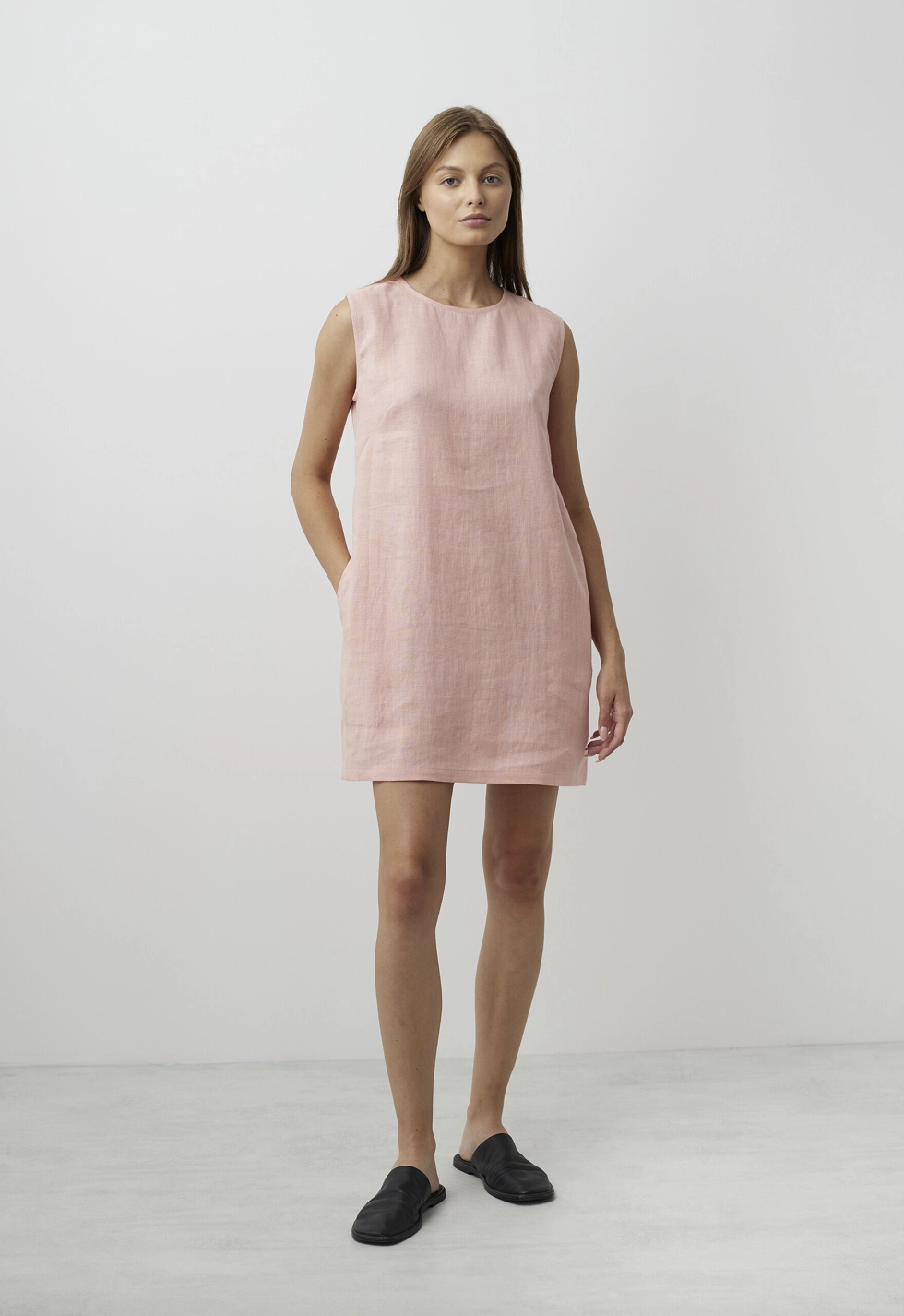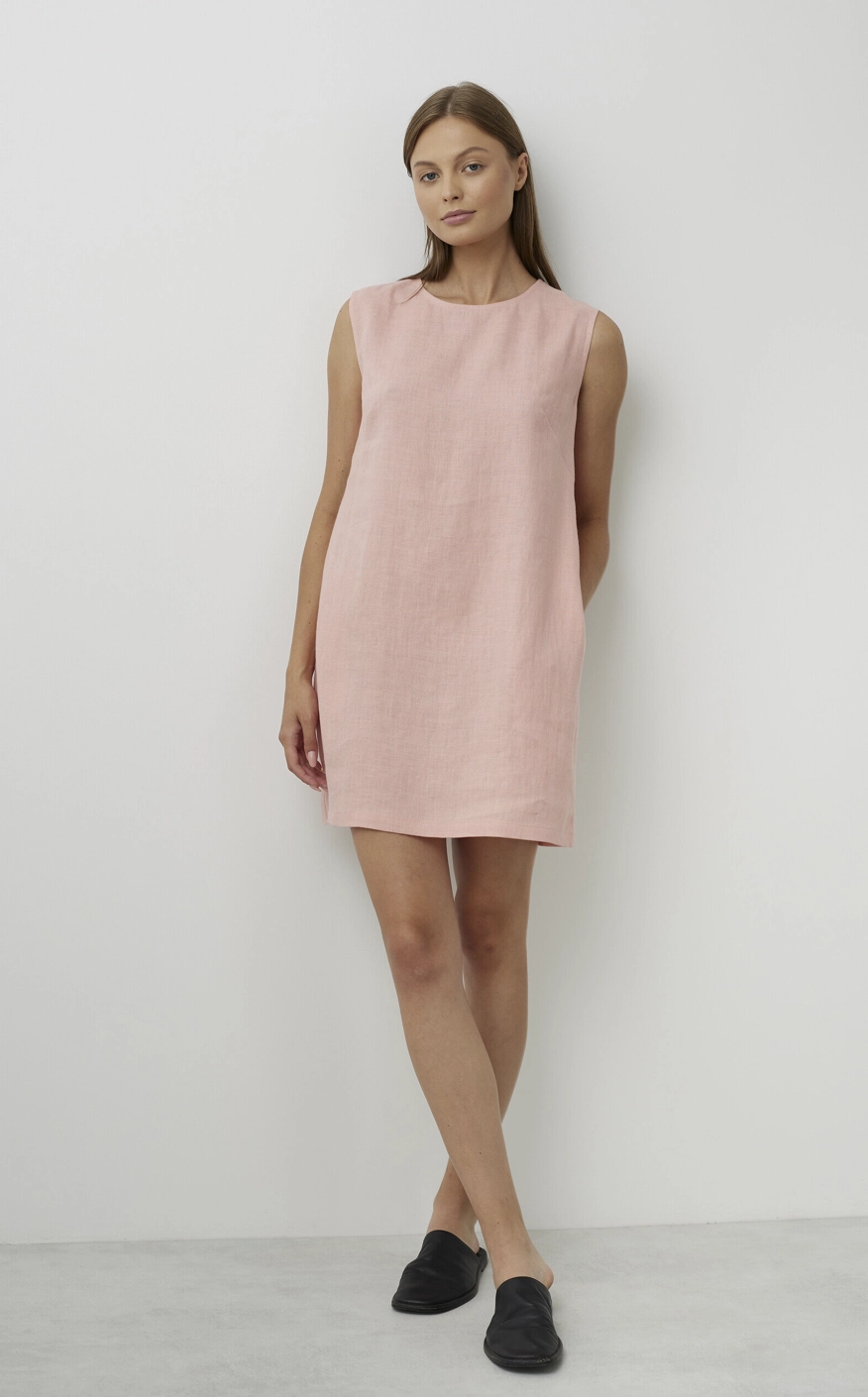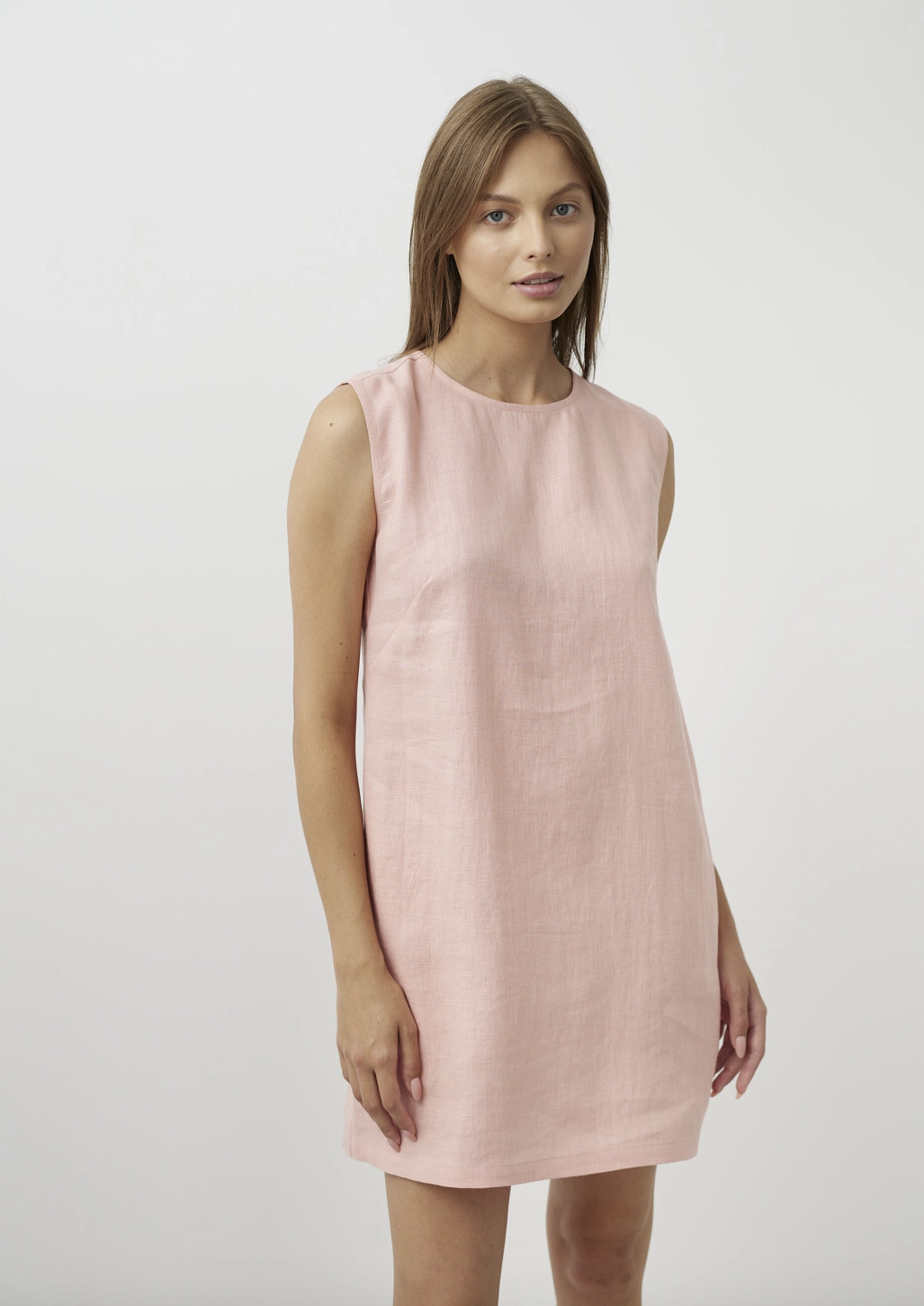 Krótki, prosty krój bez rękawów oraz klasyczny, zaokrąglony dekolt sprawiają, że sukienka pasuje do każdej sylwetki i okazji – od codziennego spaceru po mieście po wakacyjne spotkania. Dwie boczne kieszenie dodają praktycznego uroku, a luźny fason zapewnia swobodę ruchów.