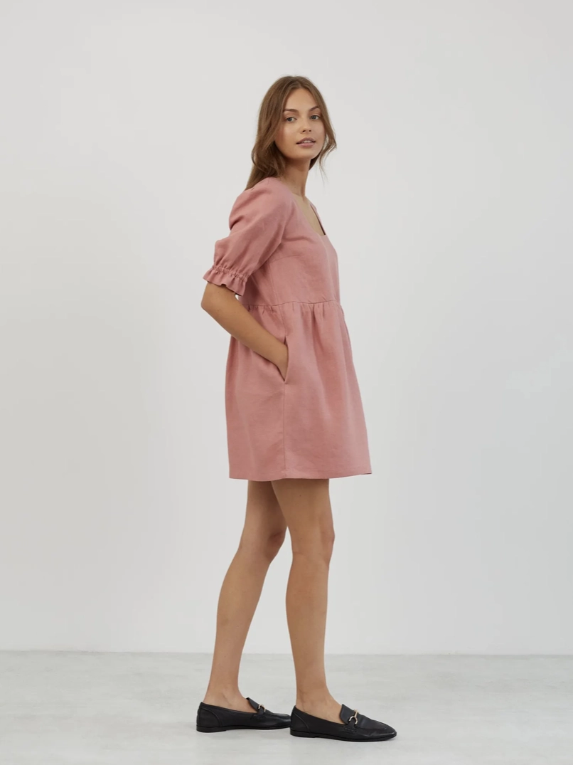 Lekka, dziewczęca i niezwykle wygodna – nasza lniana sukienka z bufkami to idealny wybór na ciepłe dni. Wykonana z wysokiej jakości certyfikowanego lnu OEKO-TEX®, zapewnia komfort noszenia i pozwala skórze oddychać.