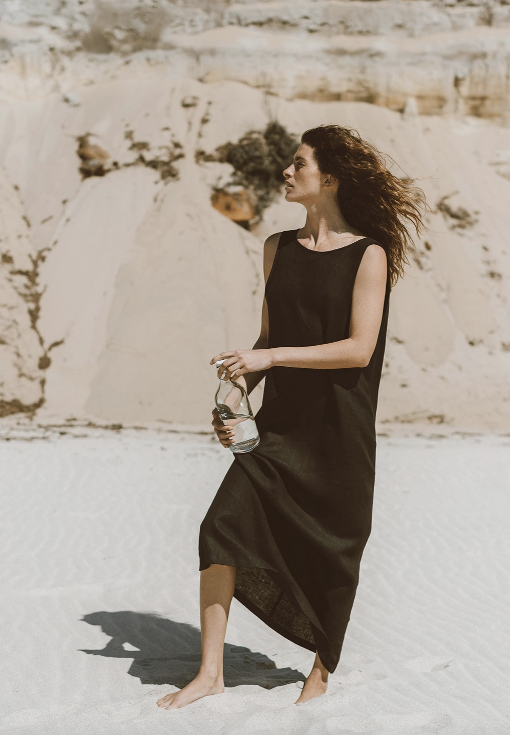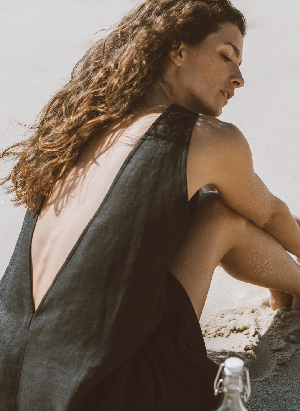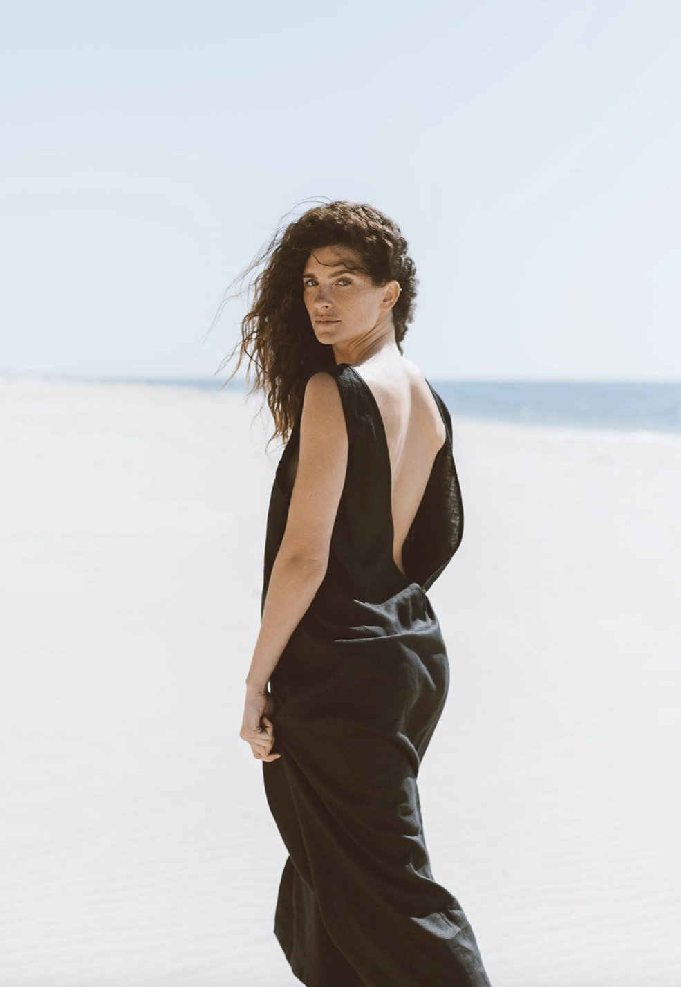 Minimalistyczna, a jednocześnie zjawiskowa. Ta długa lniana sukienka to ukłon w stronę naturalnych tkanin i ponadczasowego stylu. Uszyta z wysokiej jakości lnu, zapewnia przewiewność i komfort nawet w najcieplejsze dni. Jej prosty krój kontrastuje z głębokim dekoltem na plecach, który subtelnie odsłania skórę, dodając sylwetce lekkości i zmysłowości.