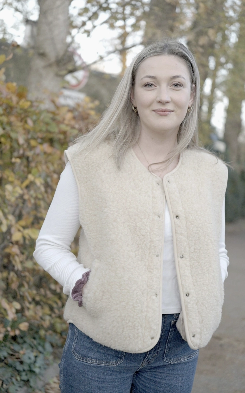 Każda kamizelka powstaje ręcznie w małej, rodzinnej pracowni w Polsce, gdzie dbałość o detale i wysoka jakość wykonania są najważniejsze. Miękka, „teddy” struktura merinowej wełny jest jednocześnie lekka, ciepła i wyjątkowo przyjemna w dotyku. Materiał świetnie oddycha i z czasem idealnie dopasowuje się do sylwetki.