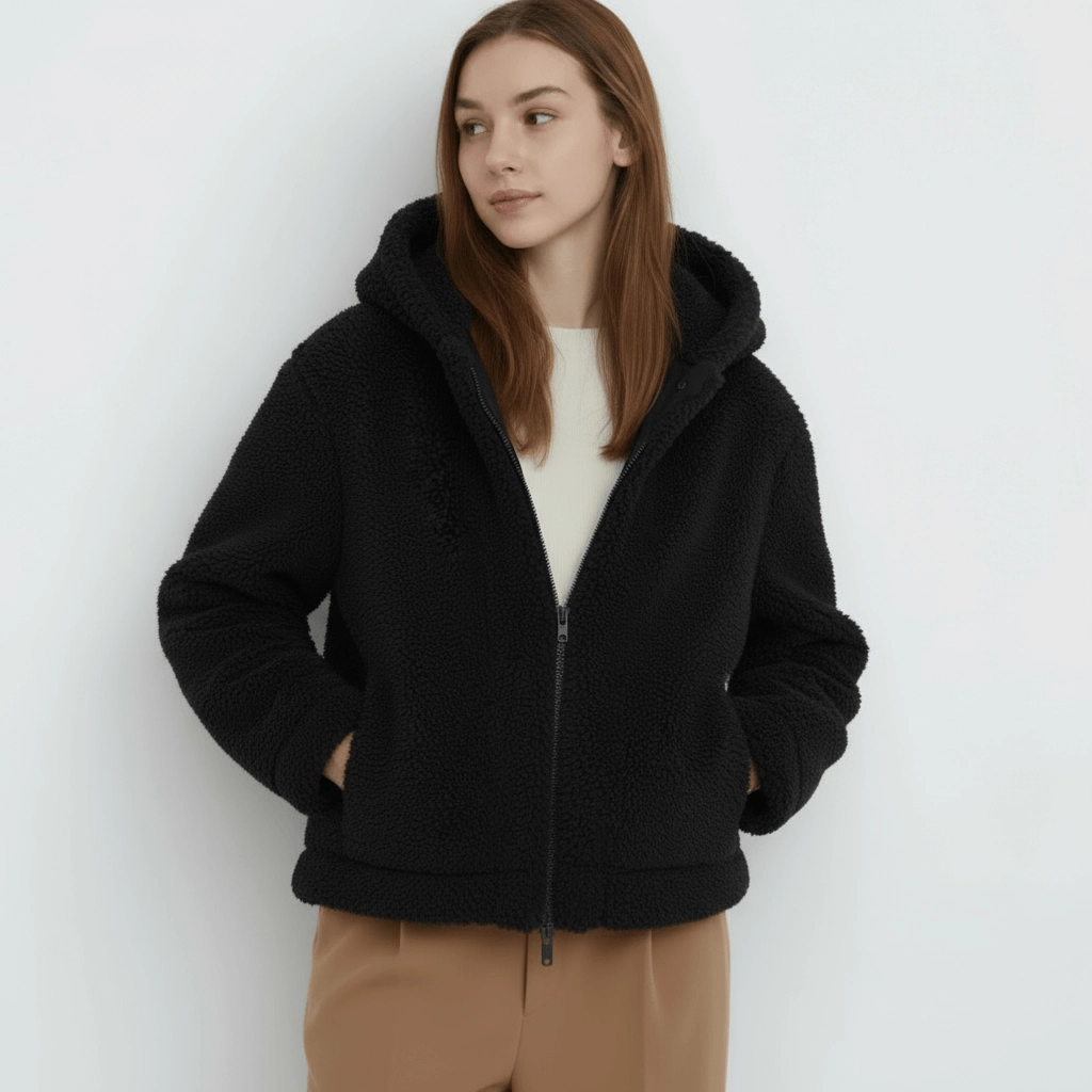 Stylowa i niezwykle miękka kurtka wykonana z wysokogatunkowej dzianiny futerkowej typu baranek (teddy). Naturalne runo ze 100% wełny merino zapewnia wyjątkowy komfort termiczny, oddychalność i trwałość. Tkanina jest miękka i przyjemna w dotyku, bez efektu drapania.