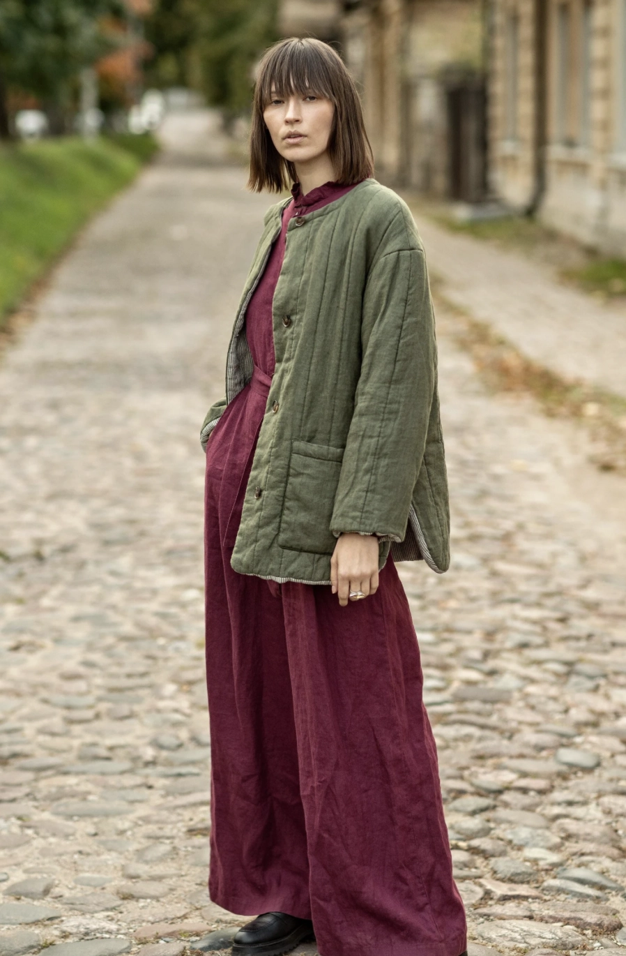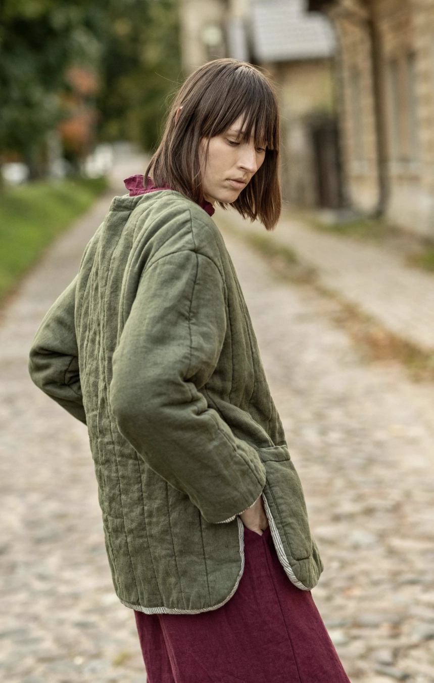 Pikowana lniana kurtka – Dwustronna i Ocieplana