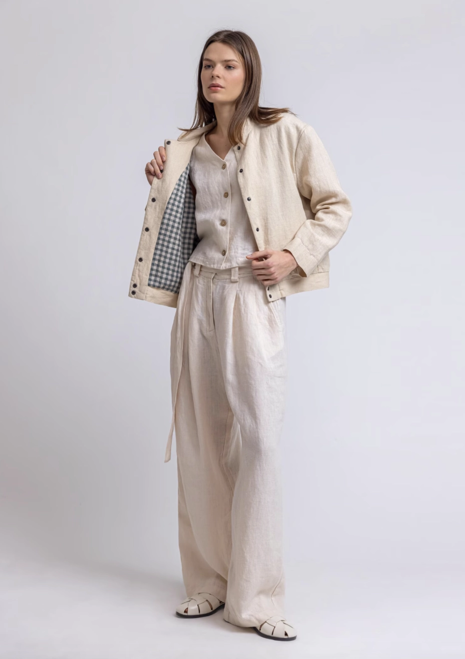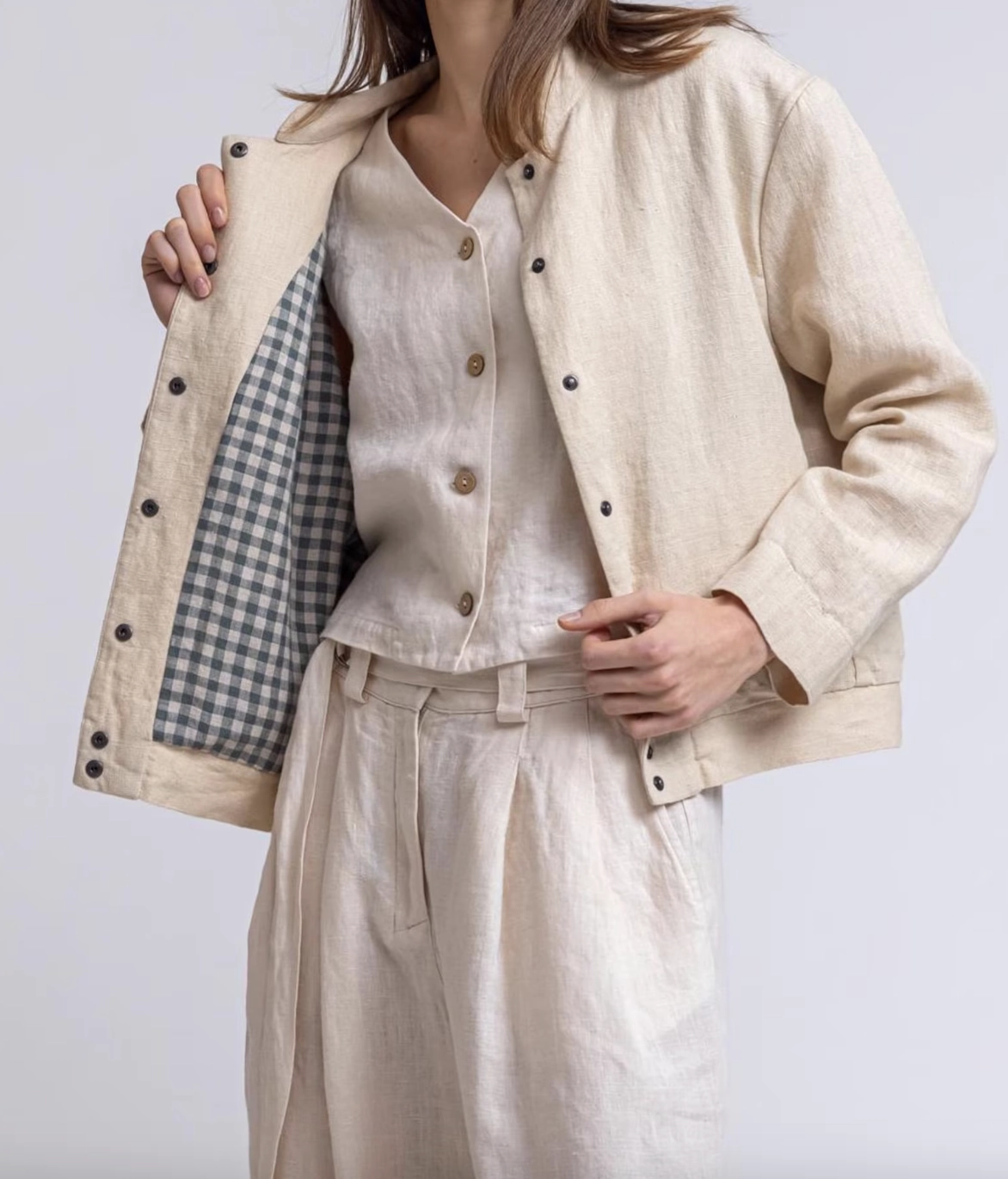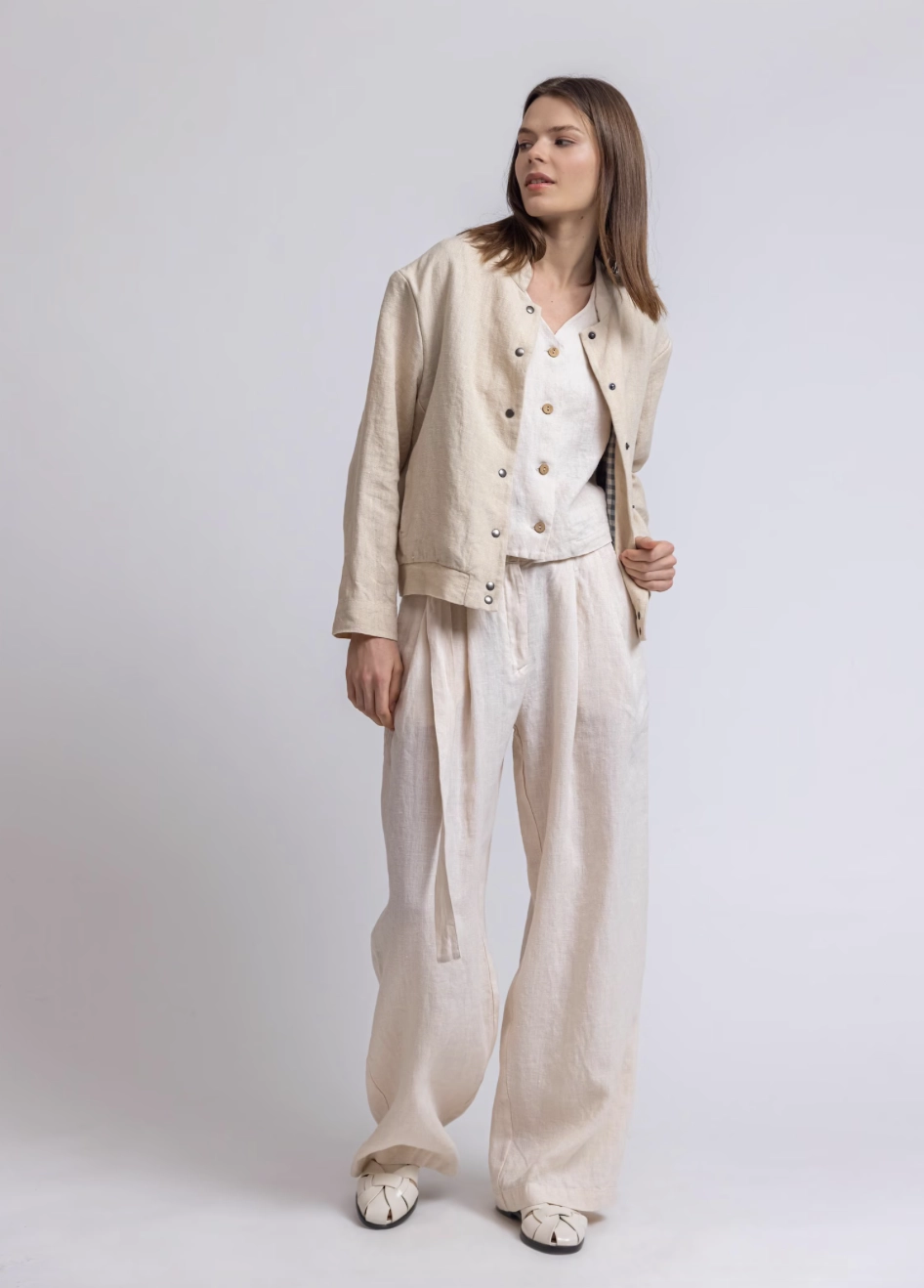 Lniana kurtka typu bomber – naturalna lekkość i minimalistyczny styl