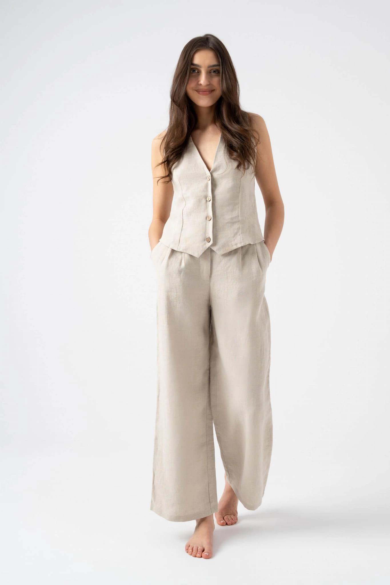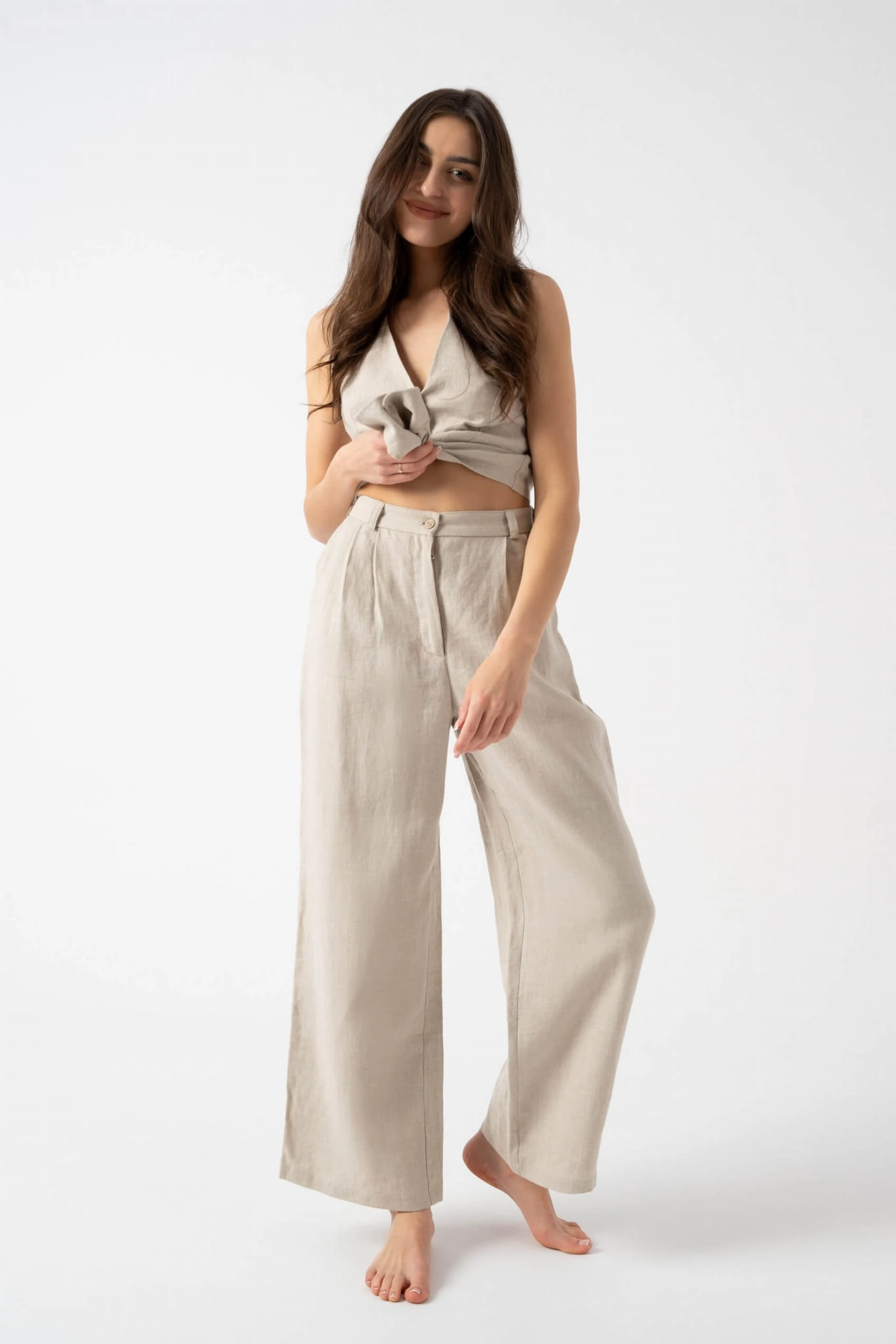 Beżowy Świt – lniane spodnie damskie