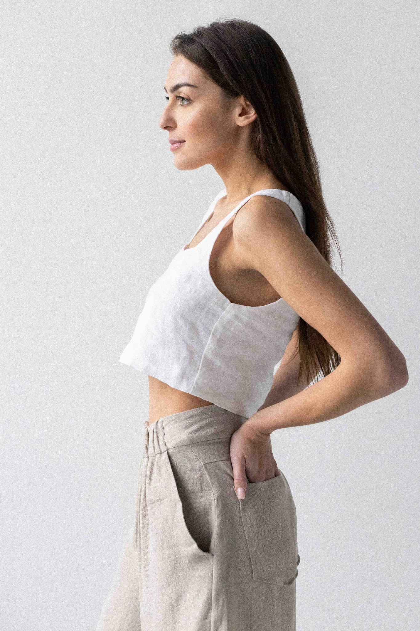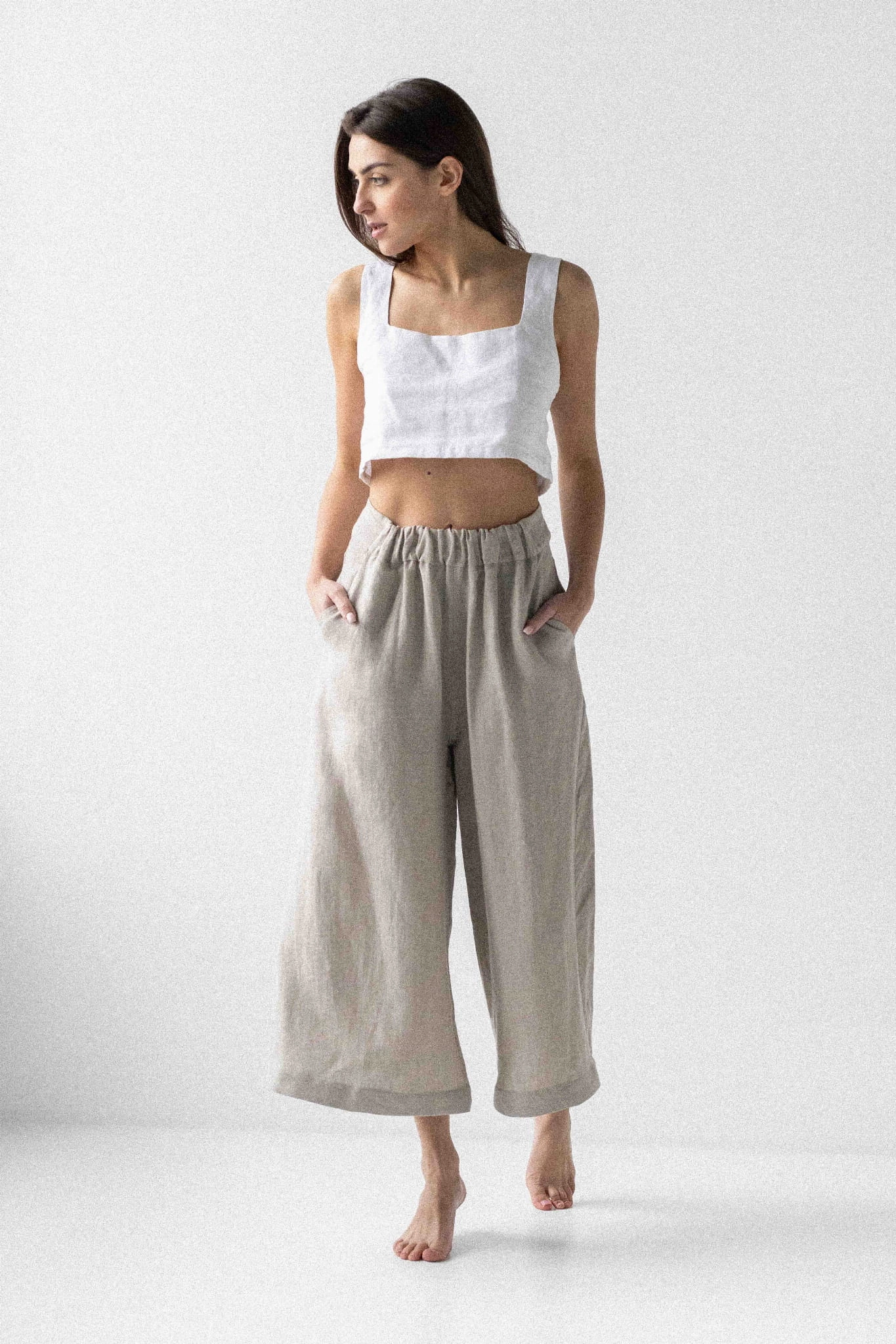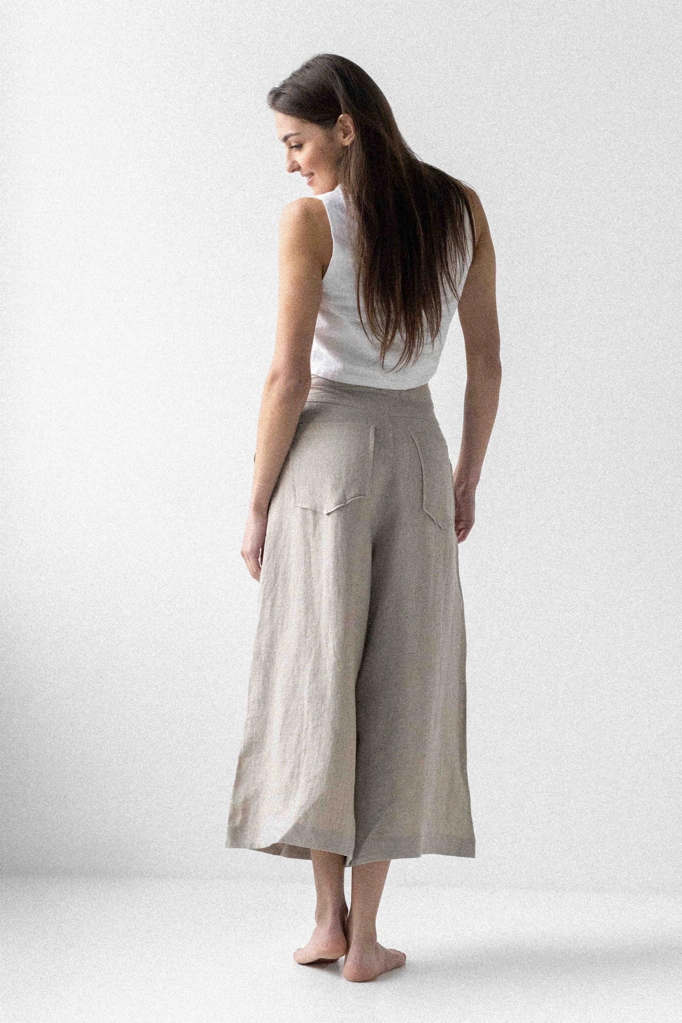 Lniane spodnie długie damskie kuloty - NATURALNE